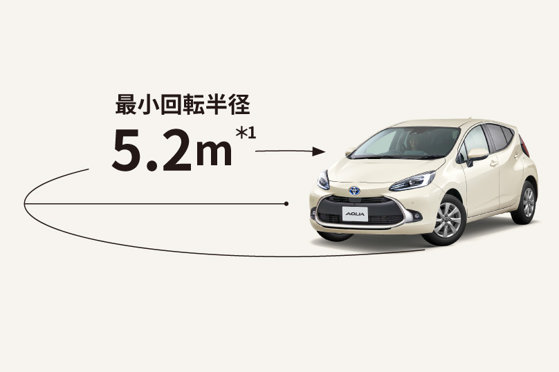 最小回転半径は、5.2mを実現。細い路地に入る時やUターン時、車庫入れや縦列駐車時の取り回しがスムーズに行えます。